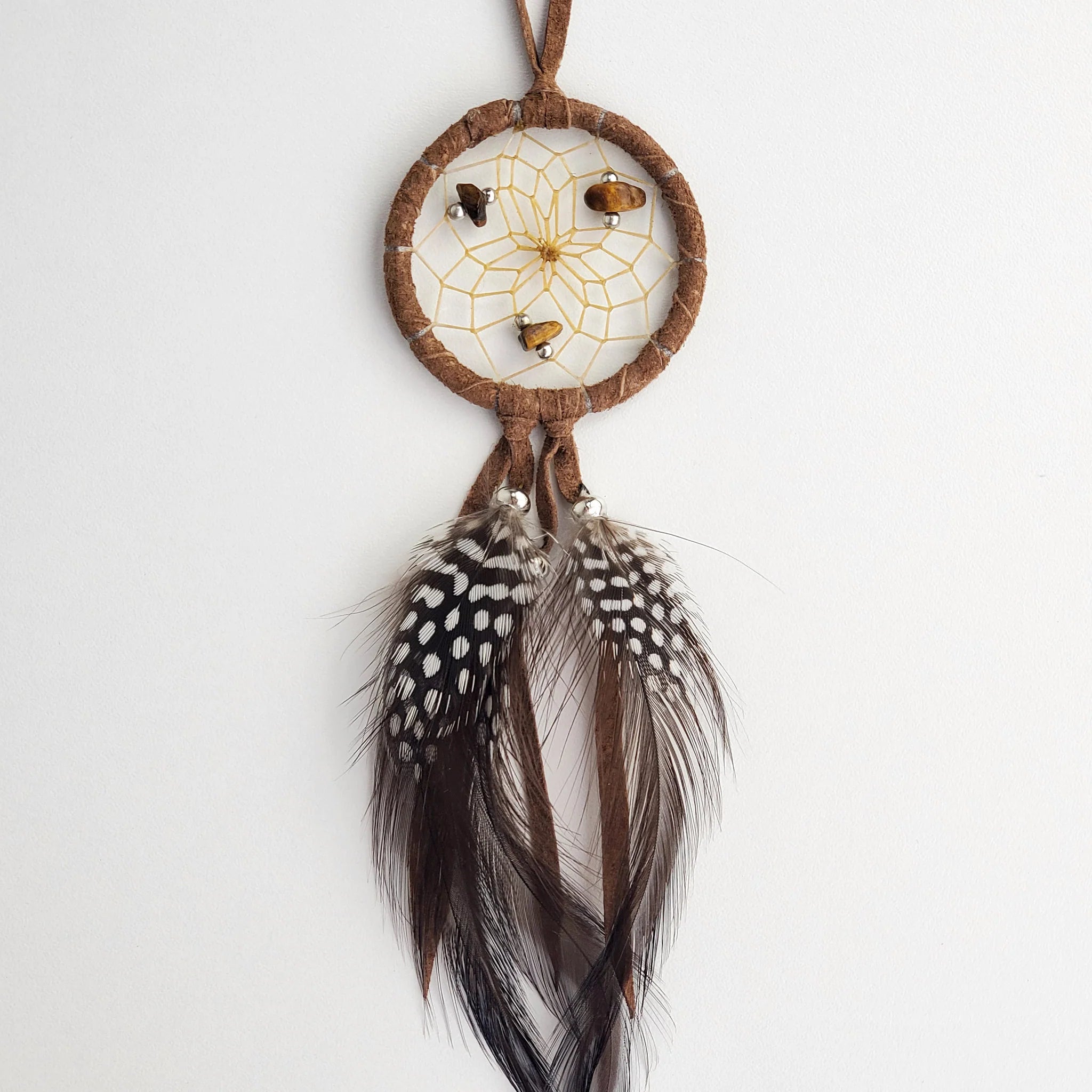 Les capteurs de rêves sont détaillés avec un cristal de quartz au milieu de la toile et ornés de pierres semi-précieuses. Le cristal de quartz aide à éliminer les pensées négatives tandis que les pierres semi-précieuses améliorent les communications et les conseils spirituels.