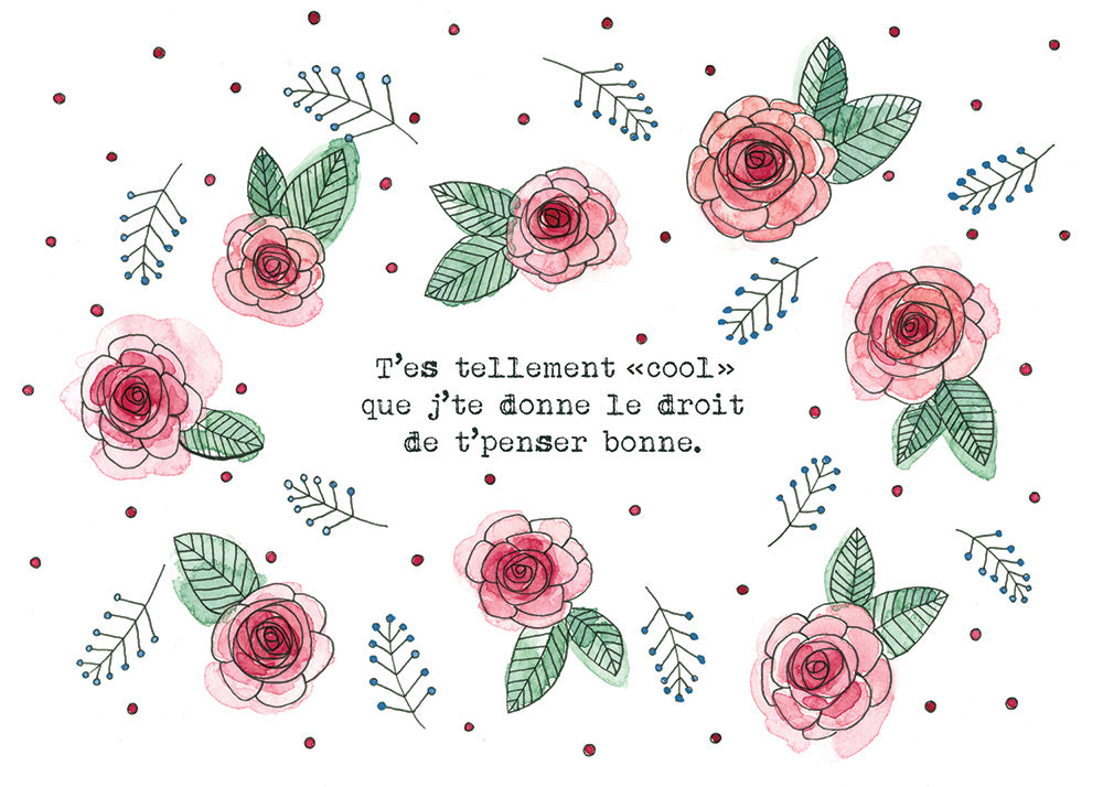 Carte de souhaits sans texte à l'intérieur imprimé à partir d'une illustration originale de Stéphanie Renière, dessiné à l'aquarelle et à l'encre. Impression sur du papier 'linen' au fini naturel et recherché. Enveloppe et pochette plastique incluses. Imprimée au Québec.