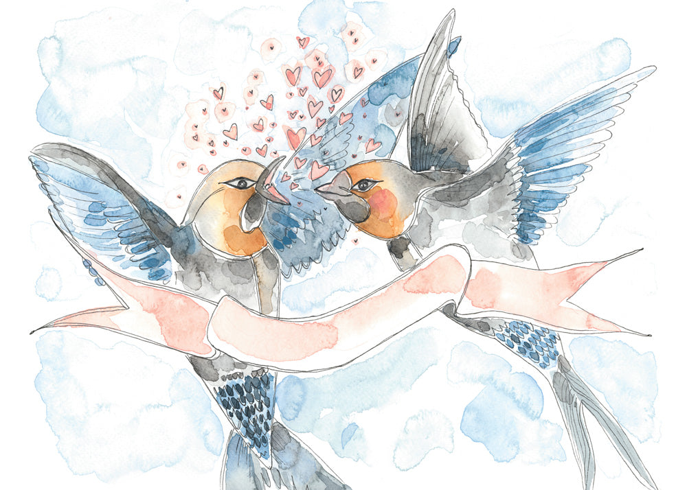 Mini carte de souhaits sans texte à l'intérieur imprimé à partir d'une illustration originale de Stéphanie Renière, dessiné à l'aquarelle et à l'encre. Impression sur du papier 'linen' au fini naturel et recherché. Enveloppe et pochette plastique incluses. Imprimée au Québec.