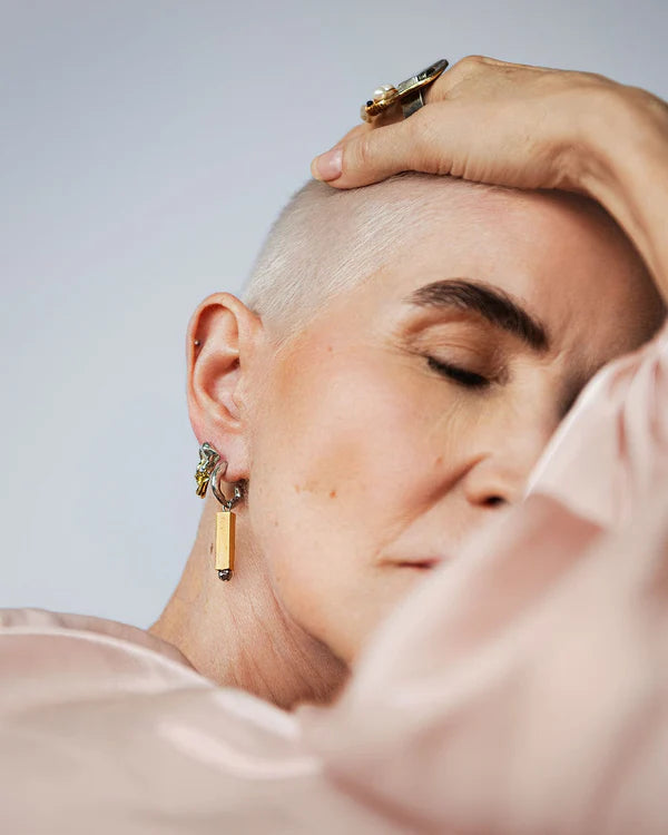 Les boucles d’oreilles Fluvi sont de petites puces d’oreilles au design moderne et affirmé. Réalisées en étain naturel ou plaqué or 22 carats, elles se composent d’un duo de la pièce phare de la collection : le Chewing-gum. Inspirée d’un fragment modelé à la main, cette silhouette conserve l’esprit contrasté, à la fois naïf et contemporain, à l’origine de la collection. Courtes et idéales à superposer sur votre oreille, Fluvi deviendra un bijou essentiel à votre garde-robe, un terrain de jeu parfait pour composer vos plus belles tenues.