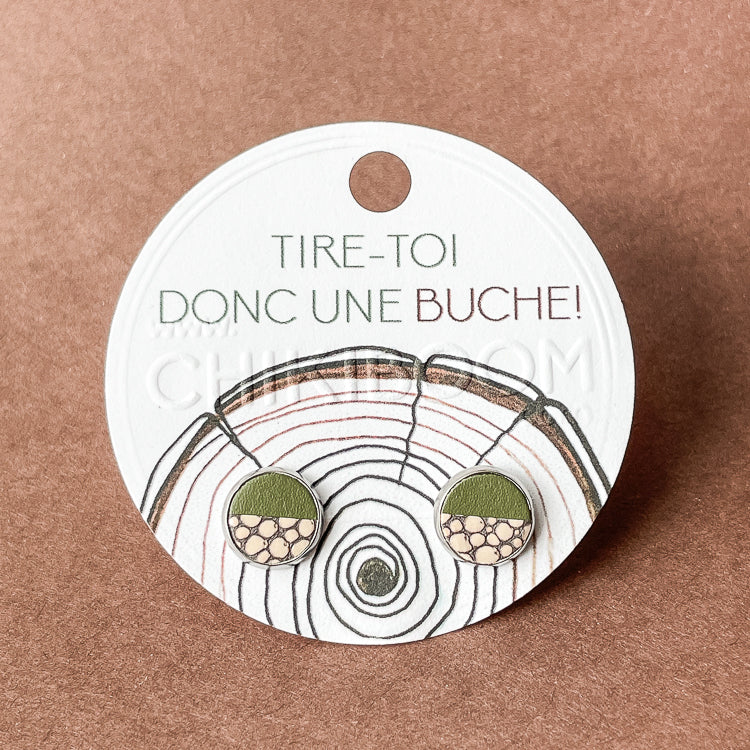 Ces boucles d'oreilles sont faites de cuir recyclé. Elles sont si délicates et mignonnes ! Voyez notre bel éventail de coloris !