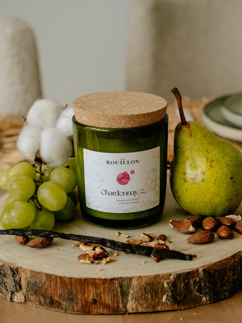 La Bougie Chardonnay est une création élégante, douce et enveloppante — comme un grand vin blanc dégusté dans une lumière dorée de fin de journée.