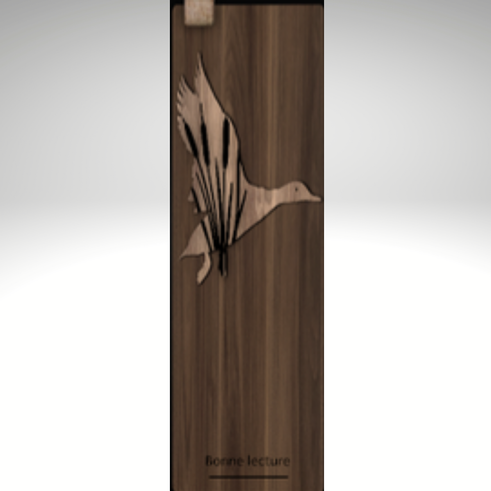 Signet en bois fait de surfaces sablée à la main au Québec, au toucher doux et naturel. Offert en assortiment de noyer, noir, cerisier ou érable à sucre du Québec. Assorti d'un ruban fabriqué en tissu naturel à double couture, sélectionné pour sa finition et harmonie avec le bois.