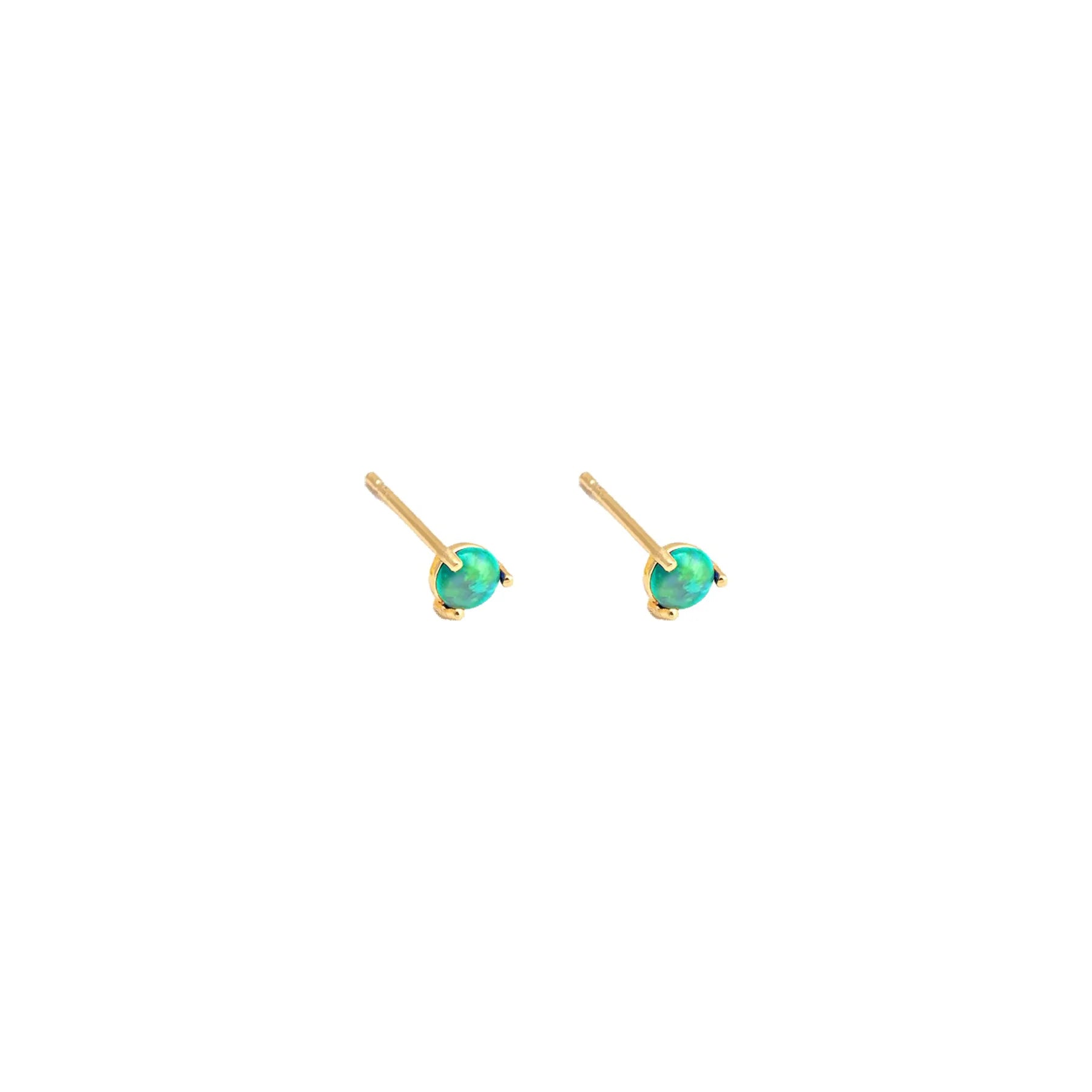 Boucles d'oreilles à tiges, plaqué or 18K, diamètre de 0,4 cm et opales synthétiques.