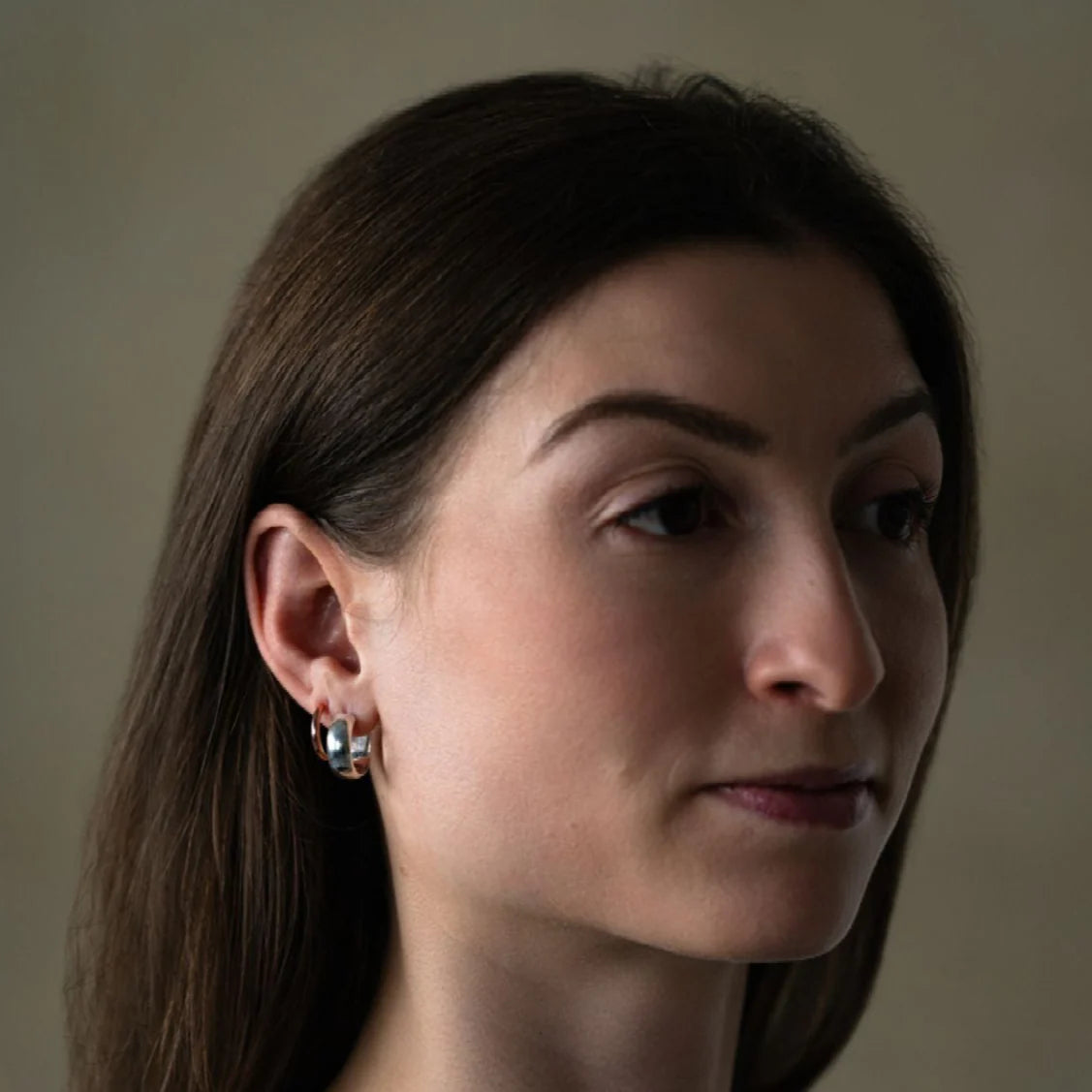 Boucles d'oreilles clous _ effet double anneau _16 mm demi-cercle argent et 14 mm demi-cercle cuivre extérieur _ intérieur argent