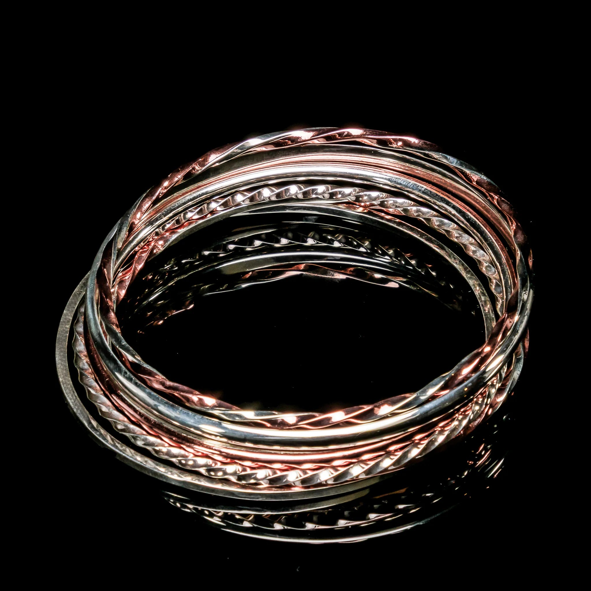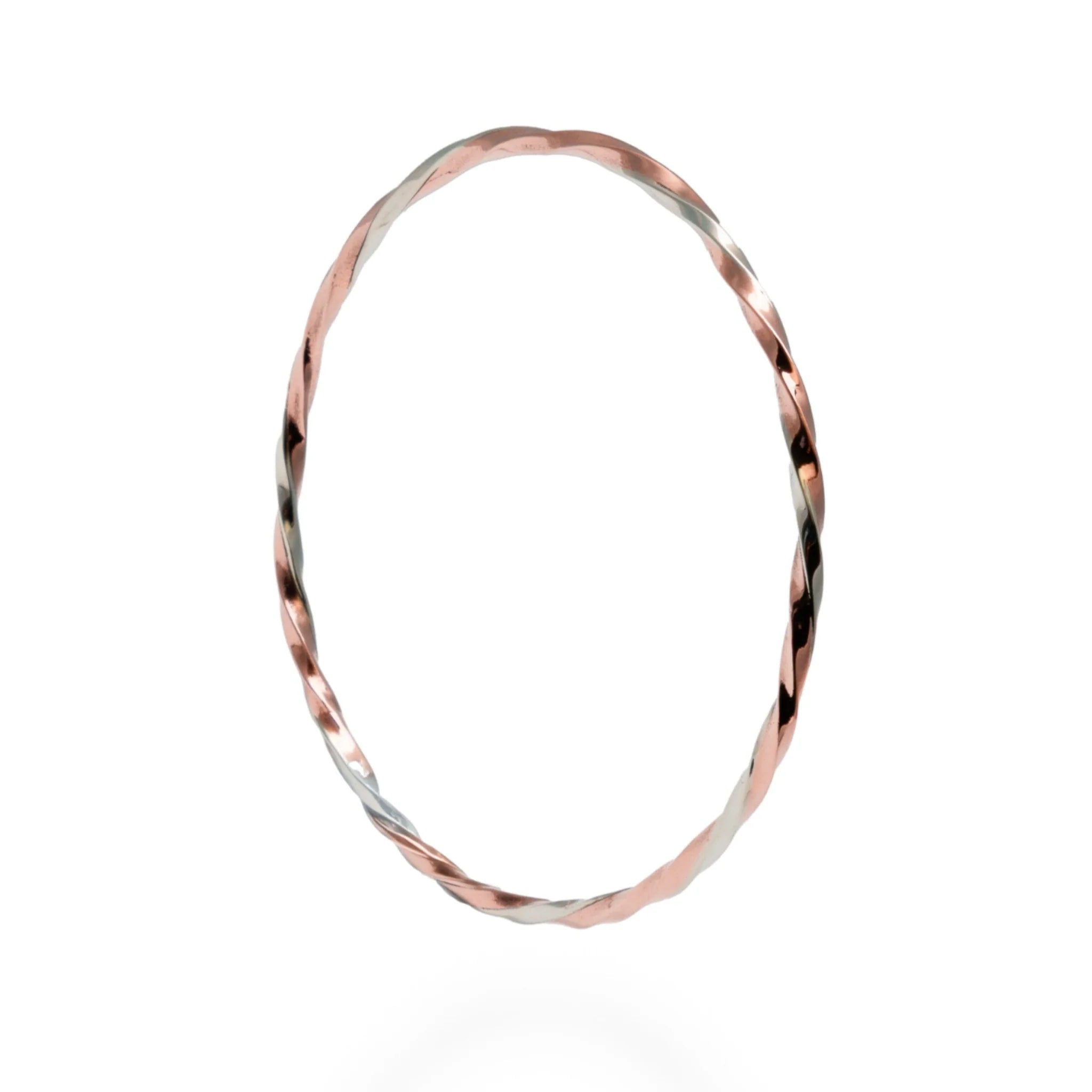 Bracelet en fils torsadés en cuivre et argent de 2 mm, disponible en petits (62 mm), moyens (65 mm) ou grand (68 mm)