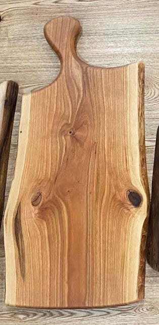 Cette planche à charcuterie à bords vivants a été fabriquée à la main par des professionnels pour mettre en valeur la beauté naturelle qui existe dans les fibres mêmes du bois. Prenez note des douces teintes d'érable qui se déplacent sur la face de la planche. Ajoutez-y une touche de forme bouclée et le résultat est une pièce tout à fait unique !