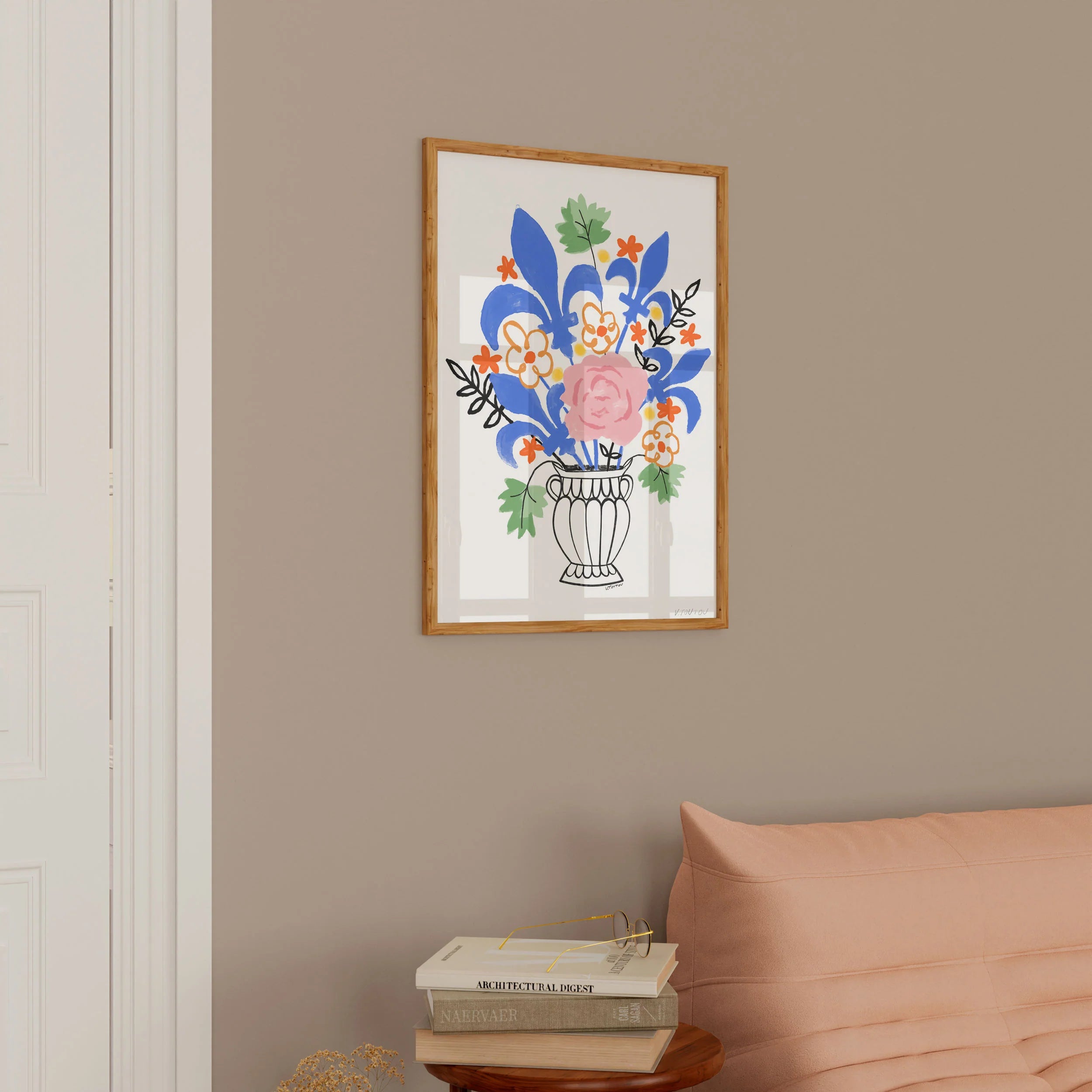 Oeuvre florale et contemporaine représentant un bouquet de fleurs de lys, symbole élégant et intemporel du Québec, idéale pour une touche de fierté tout en douceur.